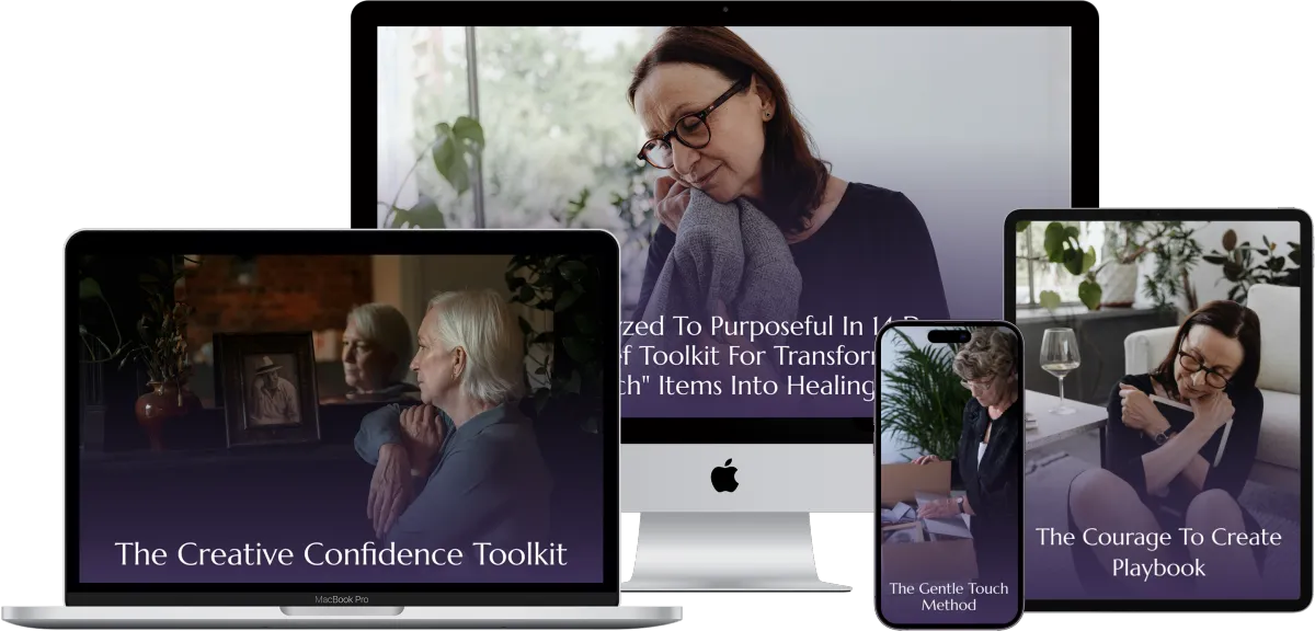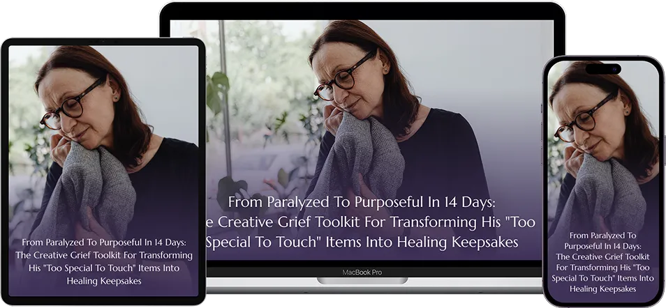 A 14-day guided path that helps you gently sort, choose, and create meaningful keepsakes so you can finally feel peace, closure, and connection without forcing yourself to “move on.”
